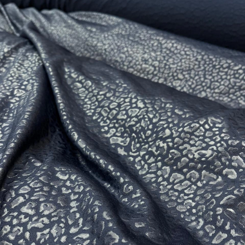 Malha de superfície brilhante com acabamento sofisticado e toque levemente acetinado, o Cirrê Trabalhado se diferencia pelo efeito texturizado que agrega profundidade e exclusividade às peças. Sua composição elástica proporciona conforto e liberdade de movimento, enquanto o brilho sutil garante um visual moderno e marcante.